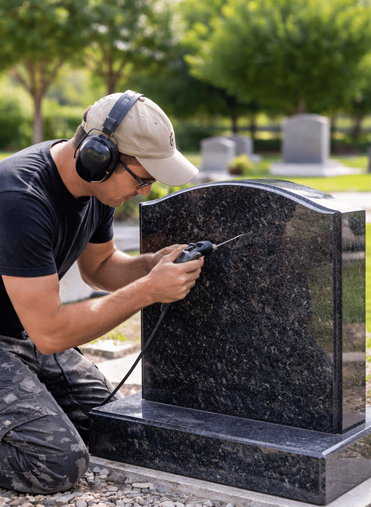 Once approvals are granted, the headstone moves into production. This stage involves: