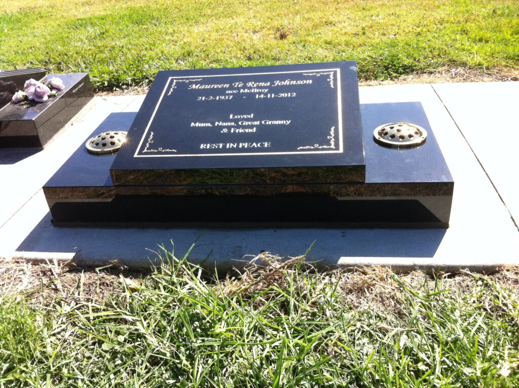 Flat headstones, sometimes called plaques or lawn memorials, sit flush with the ground or on a low concrete berm. These are commonly required in modern lawn cemeteries across New Zealand, where uniformity and ease of maintenance are prioritised.